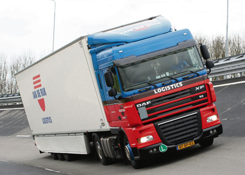 Dinsdag presenteerde minister Jan Kees de Jager (financiën) de brandstofbesparende zijvleugels van TU-technostarter Ephicas. Metingen wijzen een besparing uit van vijf tot acht procent, of een tot twee liter per honderd kilometer. Hessel Jongebreur (directeur Ephicas) denkt in oktober commercieel te kunnen leveren en wacht op stijgende dieselprijzen. (Foto: Ephicas)