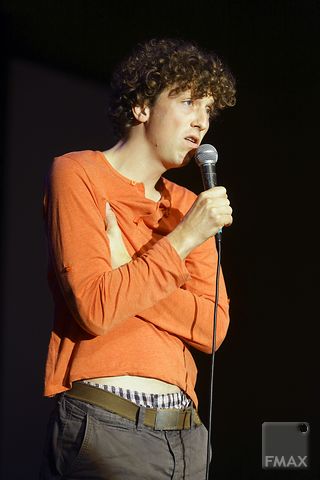 Stand-upcomedian, cabaretier en tv-presentator Jan Jaap van der Wal (o.a. Dit was het nieuws) stond afgelopen donderdagavond in een uitverkocht Culture. Hij had een aantal leden van ‘zijn’ gezelschap Comedytrain, waarvan hij artistiek leider is, meegenomen. Zoals de jonge talenten Peter Pannekoek (“Nee, dat is géén artiestennaam!”), Merijn Scholten (zie foto) en René van Meurs. Het geheel werd aan elkaar gepraat door ‘vrouw met ballen’ Soundos el Ahmadi (verliezend finalist van Wie is de Mol).