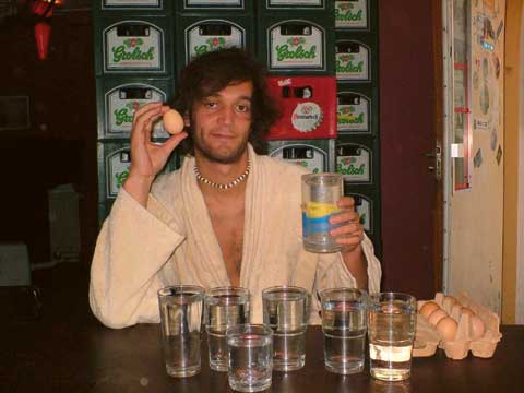 Daarom heeft het wetenschappelijk tijdschrift New Scientist mensen gevonden die bereid waren om zich enkele weekenden vol te gieten om vervolgens anti-katermiddelen te testen. Smerige hippe sportdrankjes, en de ochtend erna een bloody mary waren de mislukte remedies. Een aminozuurdrankje uit een geitenwollensokkenwinkel was volgens de deelnemers een perfecte keuze. Geen hoofdpijn meer en geen wazig gevoel de rest van de dag. Dit zou komen door de cysteïne, een stof die zich ook in eieren bevindt.