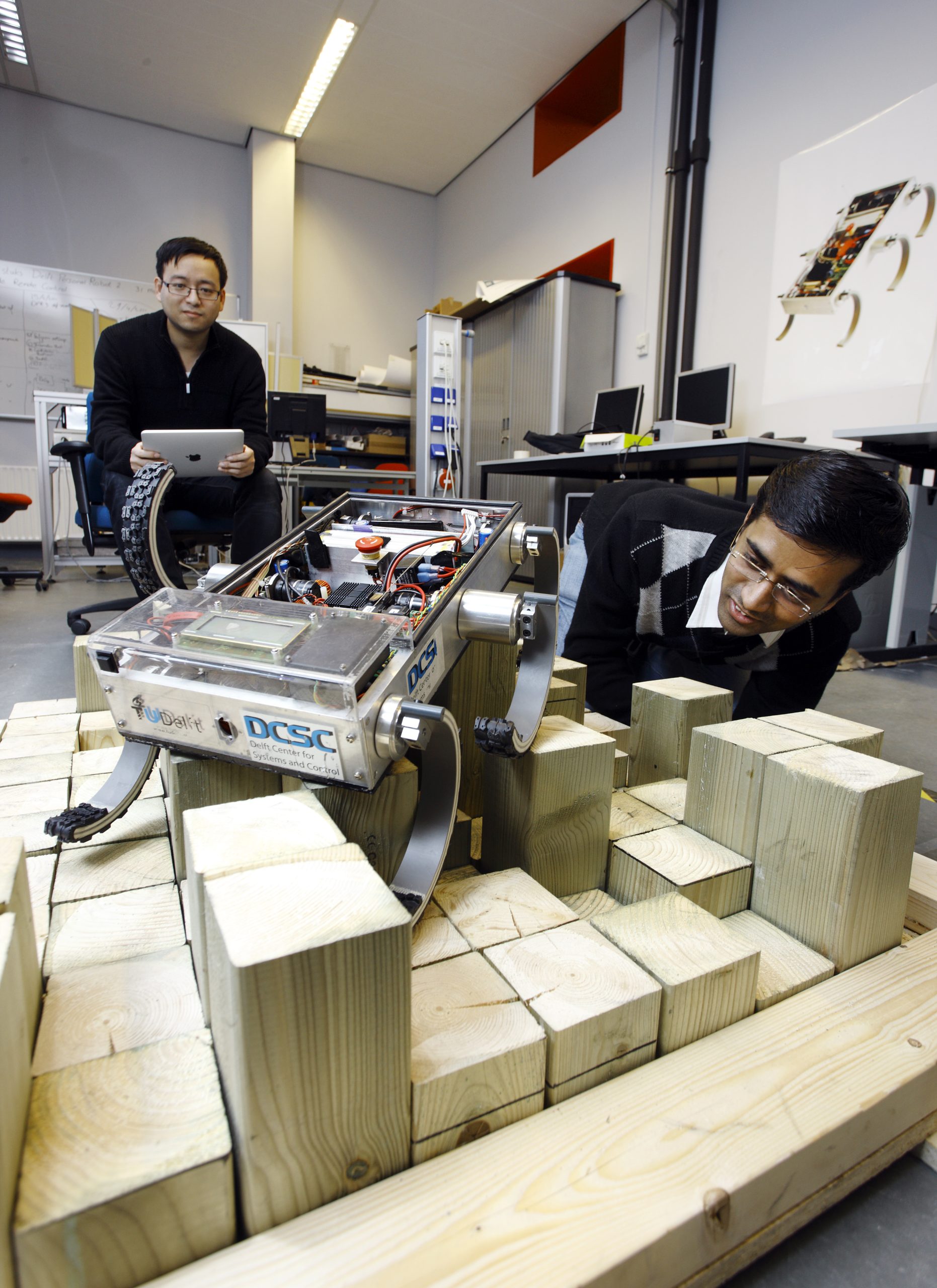 The newly named TU Delft Robotics Institute is the home of Zebro (Zes Benen Robot), a search and rescue robot. Zebro can navigate through rubble and other rough terrain to search for missing people, a far cry from industrial robots preforms tasks of repetitive motion.