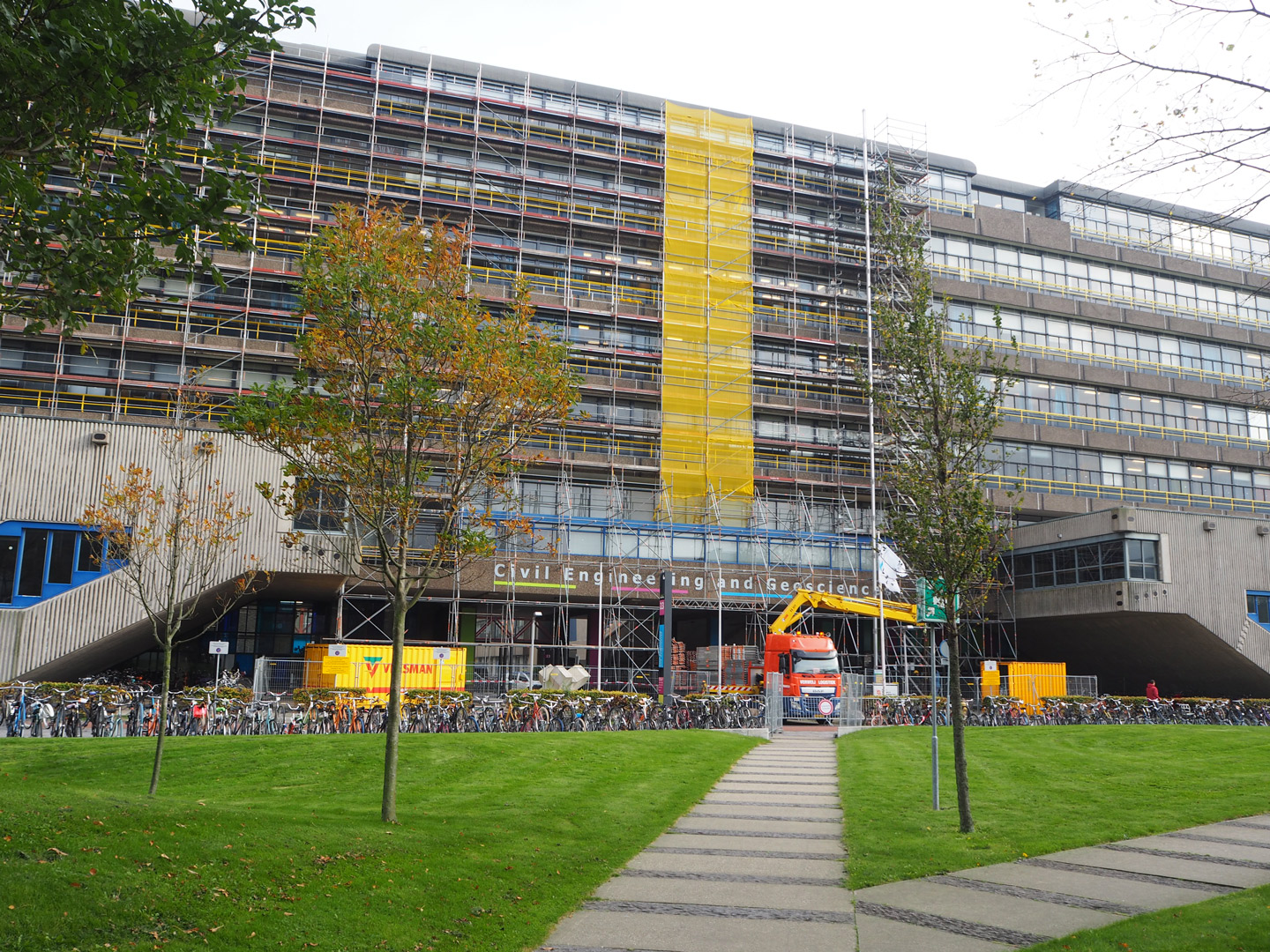 Tijdens een routinecontrole werden bij de faculteit Civiele Techniek en Geowetenschappen verhoogde concentraties legionellabacterien gevonden. (Foto: Katja Wijnands)