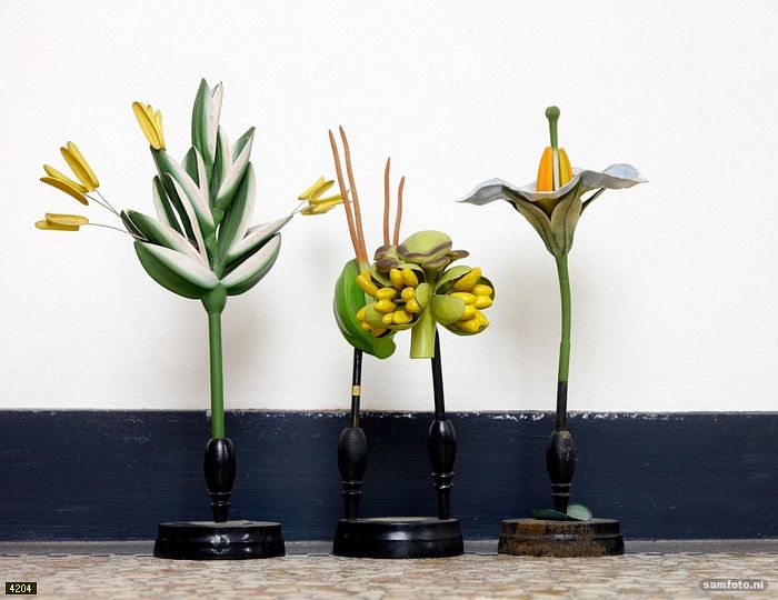 Sommige modellen zijn gemaakt van papier-maché, andere van bakeliet, de voorloper van plastic. De voetjes verklappen hoe oud ze zijn: de ronde houten zijn het oudst, de vierkante wat nieuwer en de groene vierkante het nieuwst. Ze bestaan uit verschillende onderdelen en kunnen geheel uit elkaar worden gehaald. “Maar dat doe ik niet meer”, vertelt Lesley Robertson, conservator van de kamer van Beijerinck. “Het kost mij minstens drie uur om ze weer in elkaar te zetten.” De kamer van Beijerinck is alleen te bezichtigen op afspraak, maar wordt vanaf het einde van dit jaar algemeen toegankelijk tijdens de openingsuren van het Science Centre.