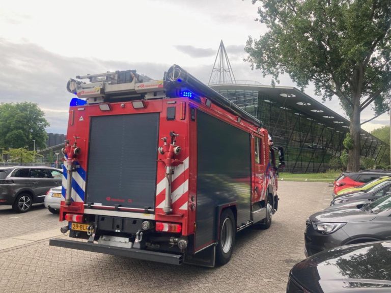 Around noon, the siren went off in the TU Delft Library. Those present in the building were urged to leave the building as soon as possible via the designated exits. About ten minutes later, a fire truck stood in front of the newly installed barrier in the parking lot and, after a brief delay, drove on to the side entrance of the Library.