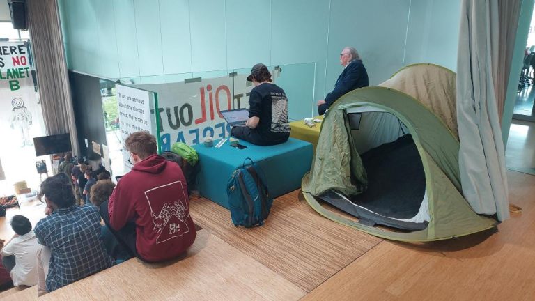 End Fossil activist and TU Delft student Tom Twigt reacts with disappointment to the conversation with Mudde. According to him, there has already been enough talking and the process is “now being delayed again with a moral deliberation”. “In the meantime, you can do all the right things: not letting fossil companies onto career fairs, making sure you don’t start new projects. It can be done and TU Delft chooses not to.” Twigt is moving into the evening “nervously”, he says, not knowing whether the TU will have him and his fellow activists removed by the police, as happened at Erasmus University. “I am not looking forward to it, but we will keep going until we reach our goal,” he says.