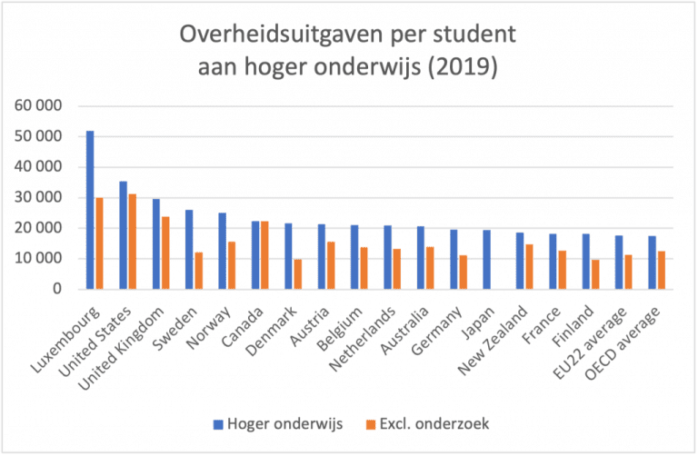 The report also contains many comparisons that shed light on the different choices made by the member countries, such as how much a country is willing to spend on higher education and research. The Netherlands is among the top ten, spending more money than average.