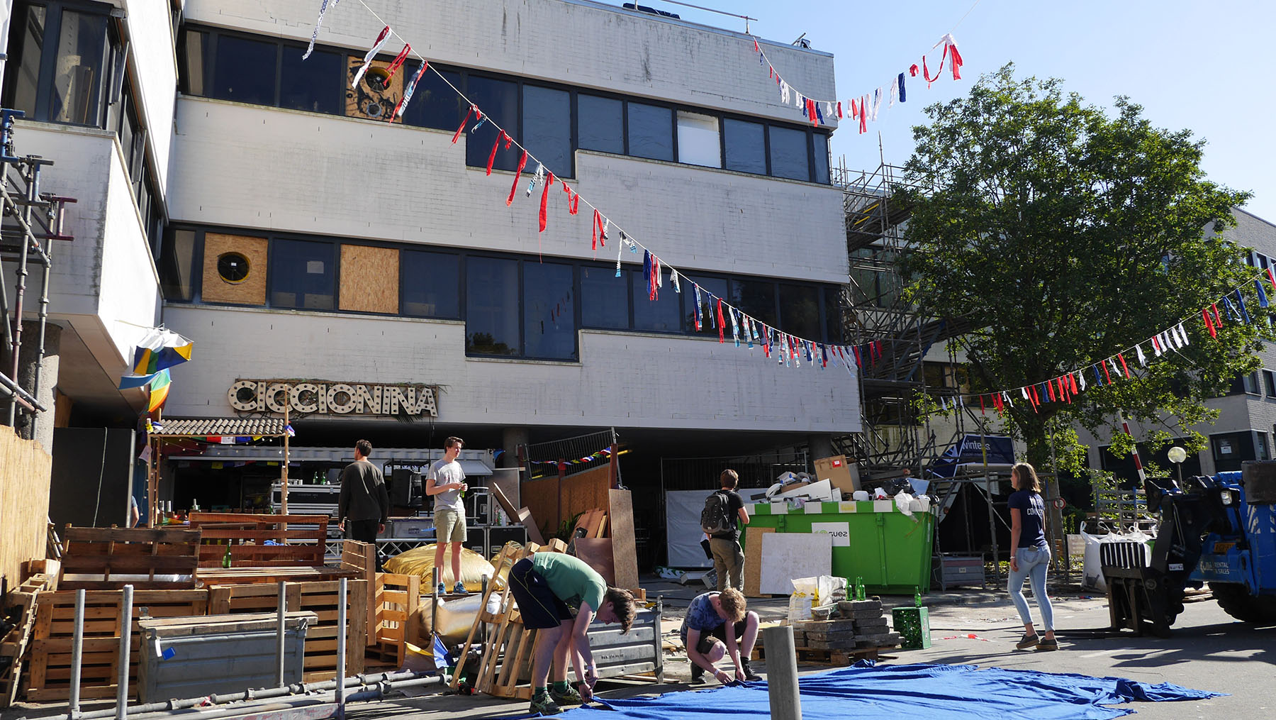“Alleen in een extern pand kun je de dingen doen die we nu doen”, vertelt Bartelings. “Alleen daar kun je bouwen en laten zien wat je kan. No way dat je ergens anders de vrijheid krijgt om neer te zetten wat we nu doen.” Inderdaad, wat de studenten van de vereniging hebben gedaan is niet niks, ze voeren zo veel mogelijk zelf uit om kosten te besparen. Kan het niet blijven als feestlocatie? “Nee”, reageert de gemeente. “Het is bestemd als bedrijventerrein. Voor feesten hebben we een prachtige locatie: Lijm en Cultuur.” “Dat is voor onze periode te duur, dus het is fijn dat we hier terecht konden”, aldus Bartelings.