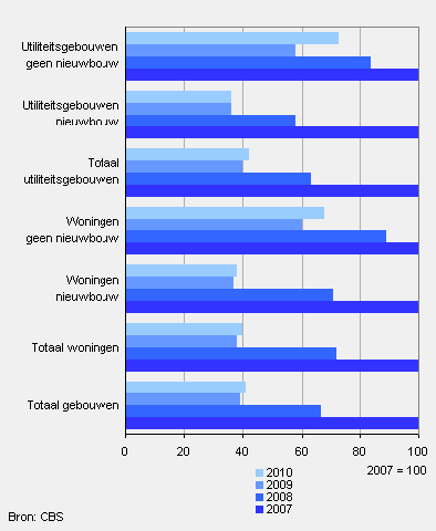 De grote leegstand van bedrijfsgebouwen zorgt ervoor dat er voor nieuwe bedrijfsgebouwen nauwelijks meer ontwerpopdrachten worden gegeven. In 2010 daalde de waarde van de nieuwbouwopdrachten met 1,1 procent. Deze waarde ligt inmiddels ruim 60 procent lager dan in 2007.