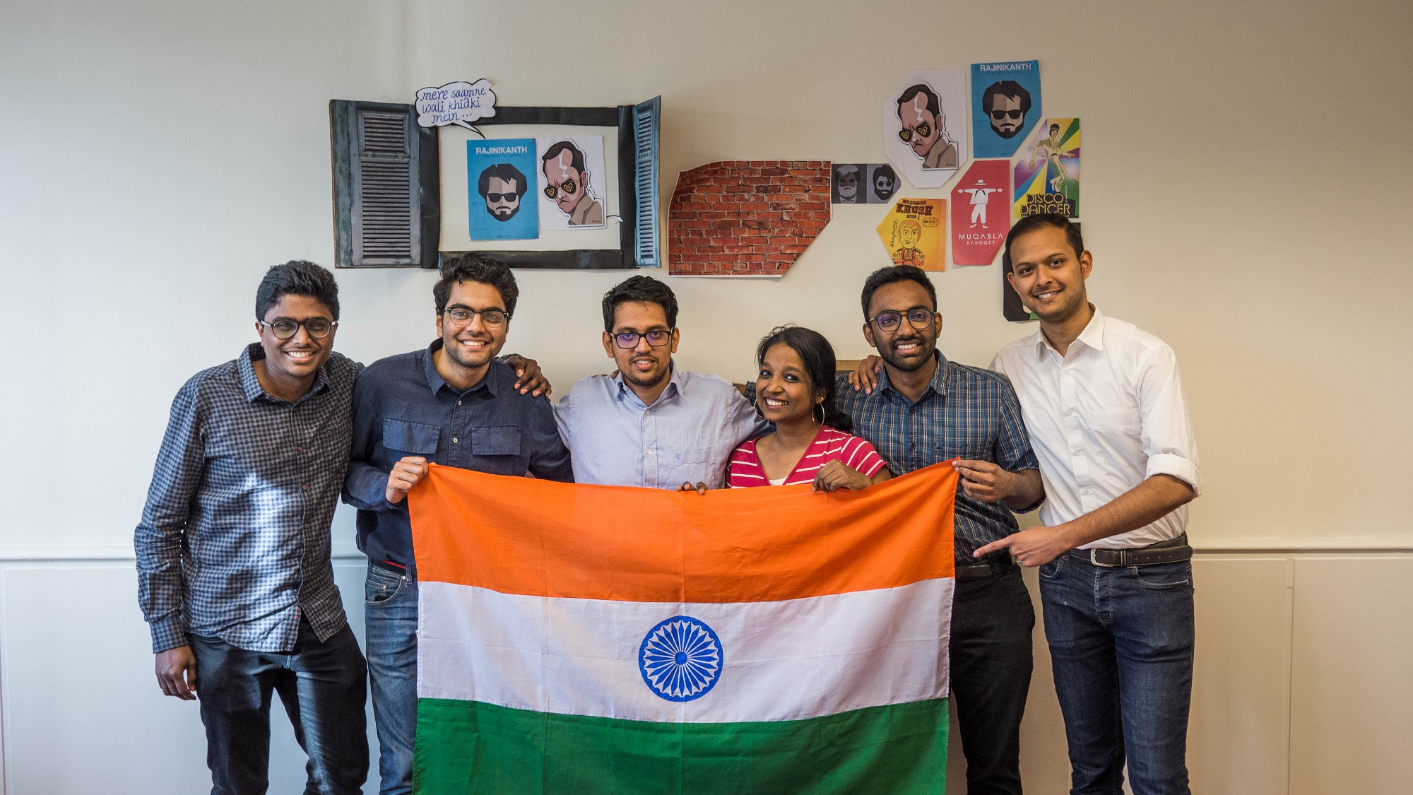 The board members of the Indian Students Association in front of several famous Bollywood illustrations. (Photo: Chris Reichard)