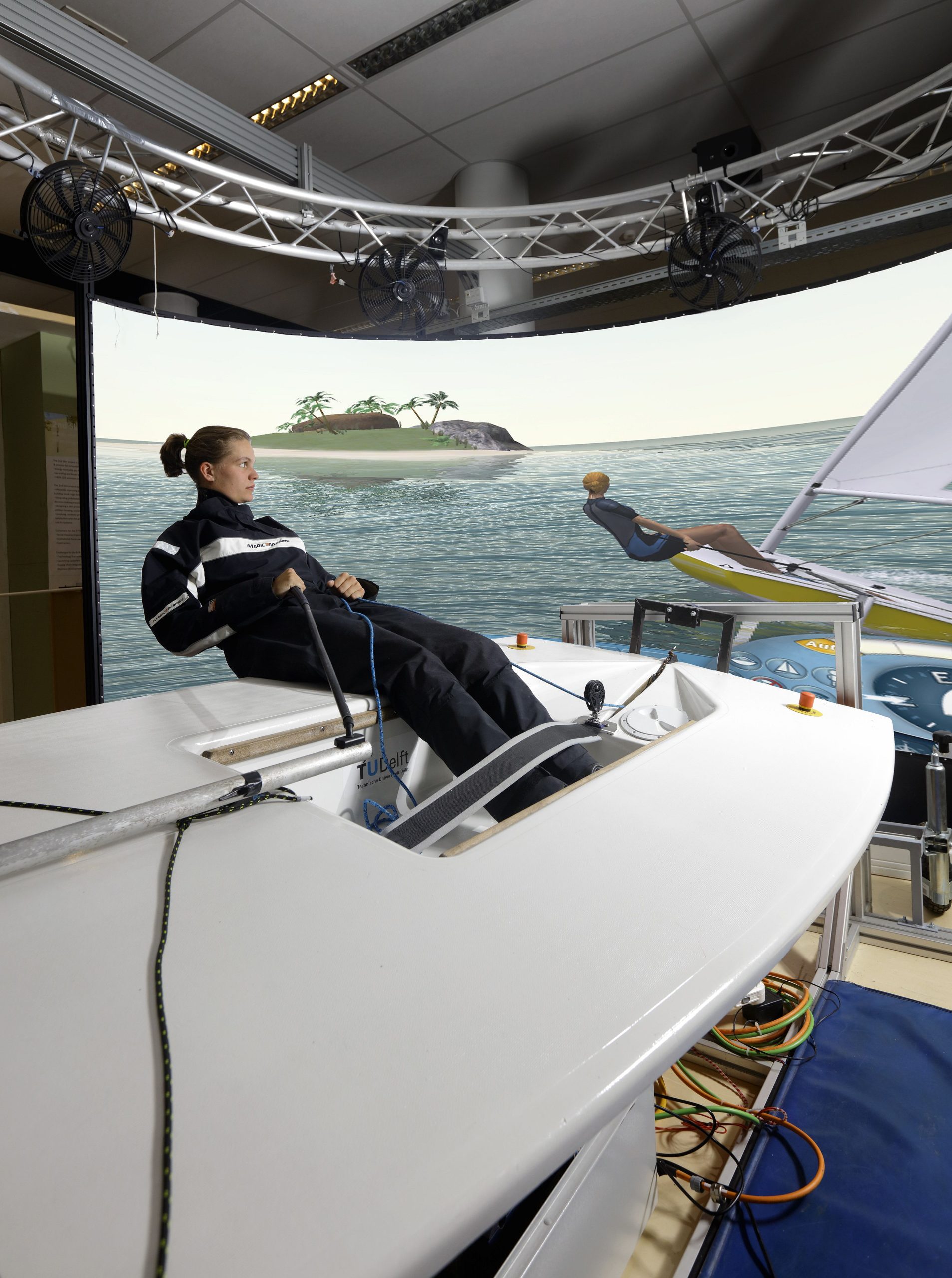 De beste ter wereld”, noemt dr.ir. Jouke Verlinden (faculteit Industrieel Ontwerpen) de Laser-zeilsimulator die is ontwikkeld door de TU Delft en Sentec. Tientallen studenten werkten voor de minor sports innovation aan de ontwikkeling en verbetering ervan. In de zeilsimulator krijgen zeilers het gevoel echt in een boot te zitten, doordat interactieve technieken het effect van golven en