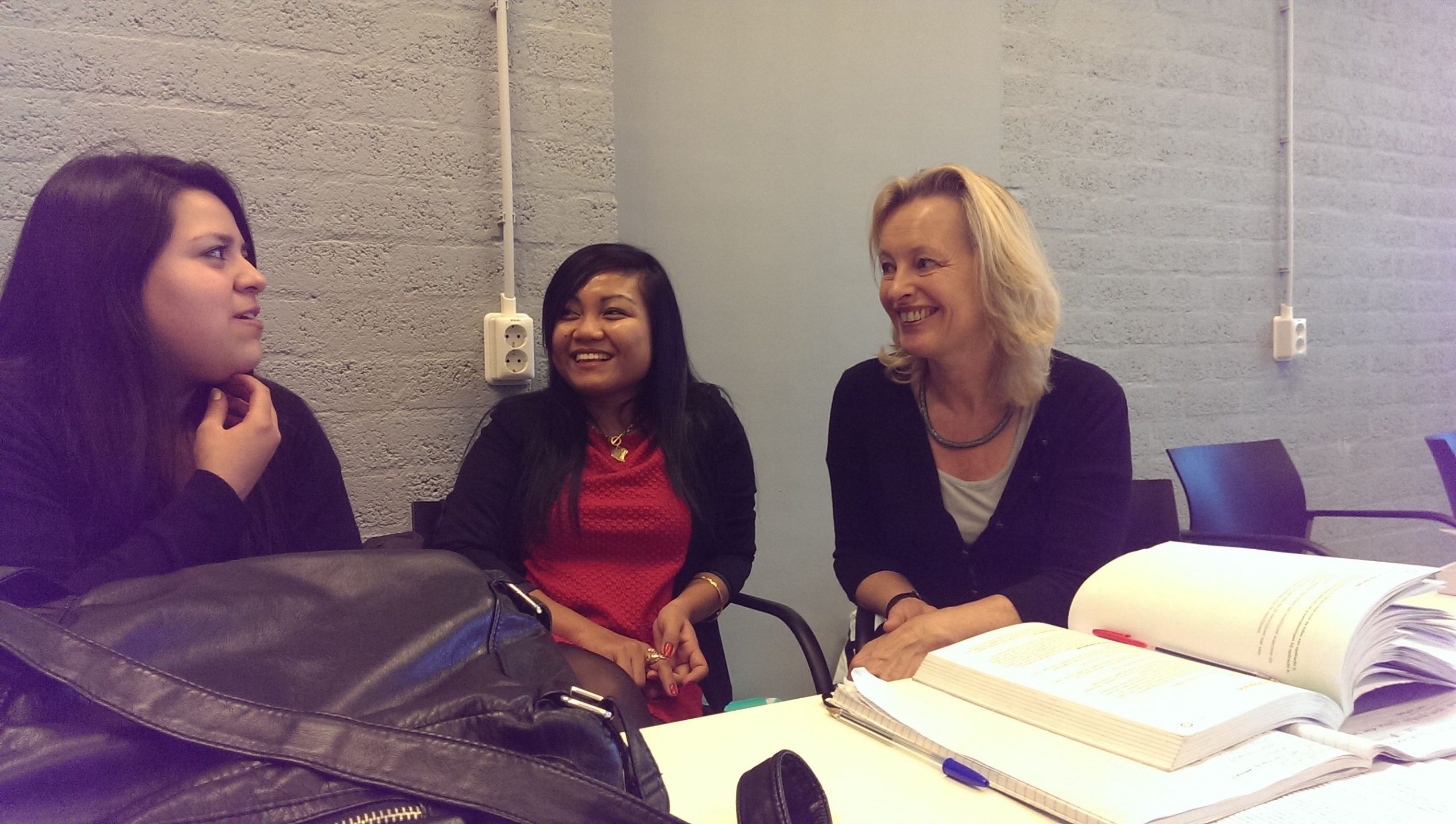 “Dus eigenlijk moet je alles opnieuw doen?”, vraagt onderwijsminister Jet Bussemaker vol ongeloof aan de Syrische advocaat Majd, die volgend jaar weer de collegebanken in wil.