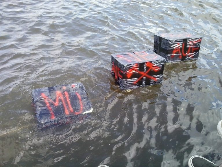 Twee studentes industrieel ontwerpen – verkleed als biggetje en pandabeer – beten het spits af. Ze waren met zijn tweeën want: “Als ik het niet haal, haalt zij het misschien.” Helaas, dit team Sixpack haalde nog niet de eerste zes meter van de 35 meter lange en o zo smalle fietsbaan. Hun fiets met cameraatje zonk naar de bodem van de passantenhaven. “Eén voordeel: je hebt mooie onderwaterbeelden”, troostte Vlemmix ze.