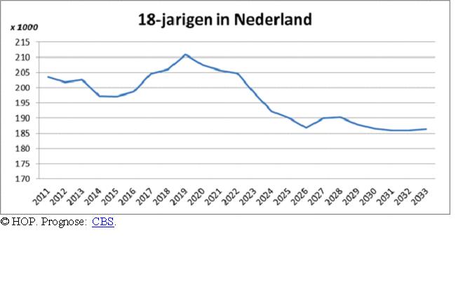 Hieronder een grafiek van het verwachte aantal achttienjarigen: