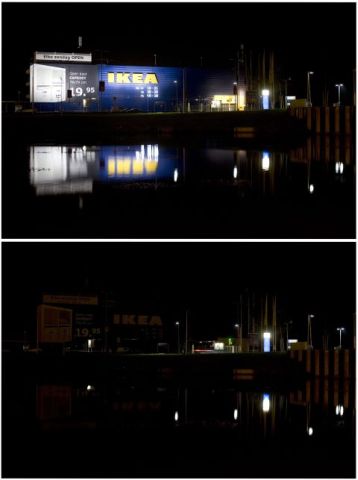 In de nacht van 30 oktober was de skyline van Delft donkerder dan anders. Dit in het kader van de landelijke Nacht van de Nacht. Vanaf 20.00 uur doofden de lichten van een aantal markante gebouwen en locaties, zoals hier bij Ikea.