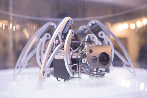 Duffe labbrillen kunnen dus rustig worden thuisgelaten, want STRP is een spannend festival, een feest voor de zintuigen, waar niets is wat het lijkt. Zo staat er een spinachtige robot, de icHexapod, op een tafeltje. Het apparaat met de zes poten lijkt niets te doen, maar dat is slechts schijn. Wie er naar loert in de hoop te ontdekken wat het ding kan of doet, wordt scherp in het vizier genomen. Zonder het te weten verander je in een prooi. Want een paar zalen verder staat een enorm beeldscherm waarop mensen vol verwondering naar iets kijken. “De icHexapod zoekt naar gezichten in de menigte en als je er dichtbij staat, maakt het live videobeelden van je. Een paar zalen later kom je er dus pas