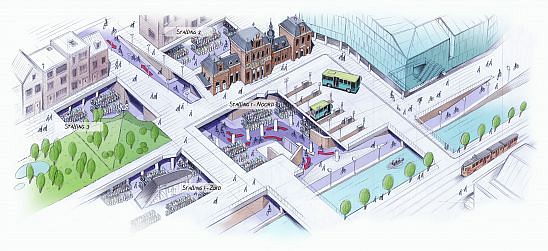 In totaal zijn er nu 7700 ondergrondse plaatsen. Dat betekent dat het grootste deel van de bovengrondse stalling morgen – 23 mei – dicht gaat. De grond wordt bouwrijp gemaakt voor de bouw van The Student Hotel en plan Antoni. Verder komt bovenop de stalling Park Spoorloos, dat vanaf eind dit jaar wordt aangelegd.