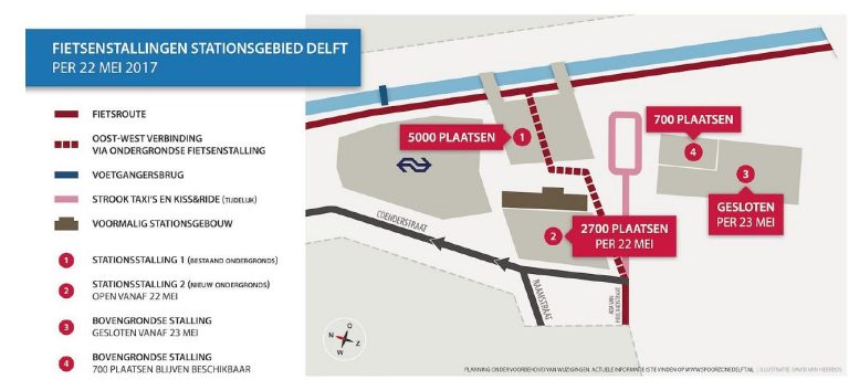 De tweede ondergrondse fietsenstalling op station Delft is vandaag geopend. Dat betekent het einde voor de bovengrondse stalling, die morgen dicht gaat.