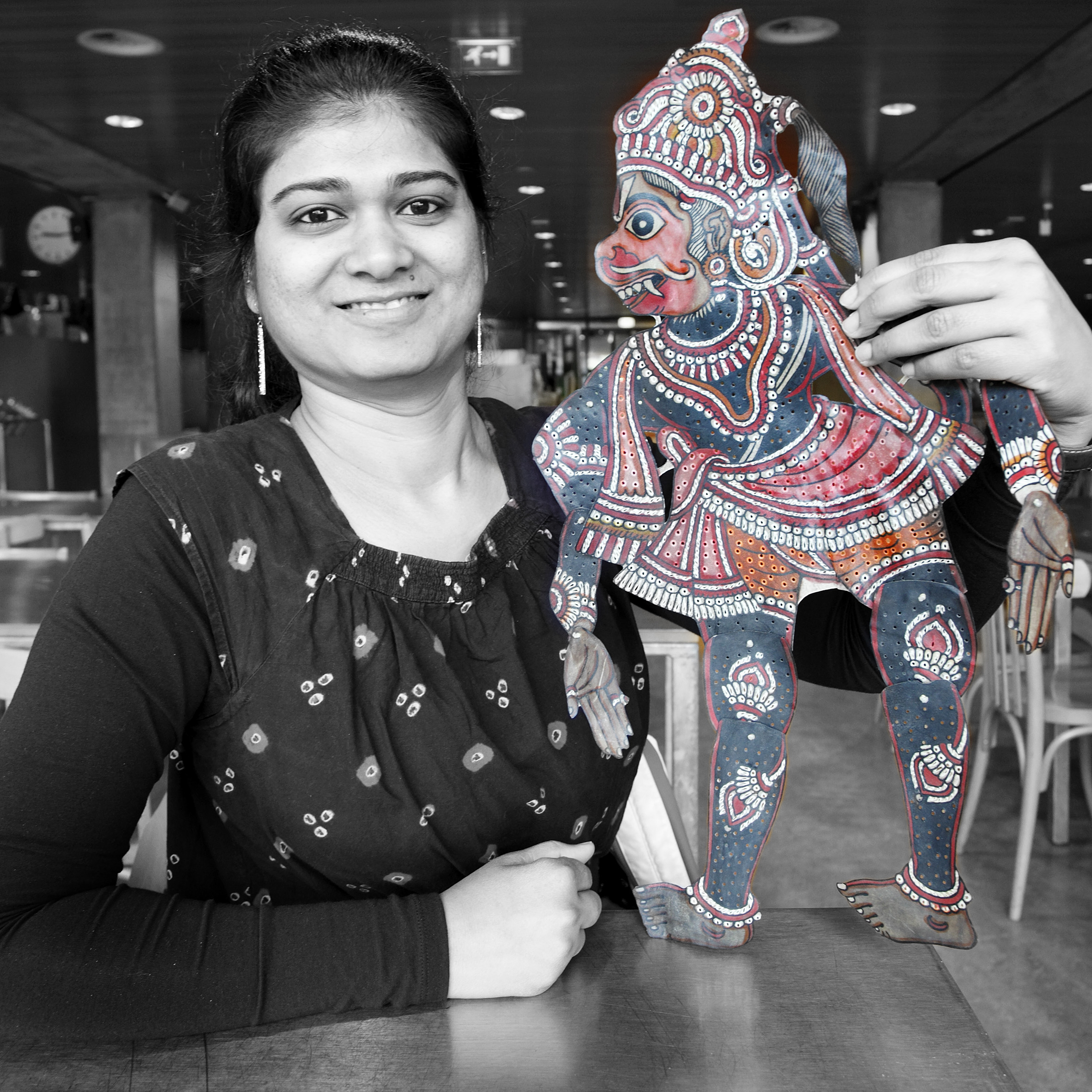 Gunjan Singh, 27, from Bihar, India. Hanuman, this is the name of the image of the god who looks like an ape. He is the protector against evil. He is made of washed goatskin and Singh’s friends in India often use him when performing puppet shows.