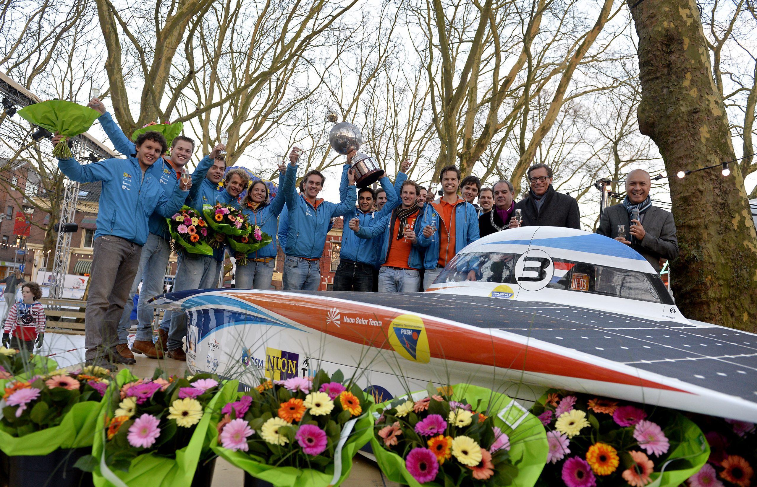 In de Australische woestijn werden zij in oktober wereldkampioen, voor de vijfde keer. De teamleden stonden met hun zonnewagen Nuna7 bij de schaatsbaan op de Beestenmarkt. Veel belangstellenden kwamen de snelle studenten feliciteren. Namens de stad zei burgemeester Verkerk trots op hen te zijn: “Zij laten zien dat Delft dé techniekstad bij uitstek is”.