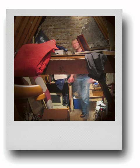Deze tentamenweek was bouwkundestudent Tim regelmatig van huis. Waar hij uitging weet niemand, maar tentamens heeft hij niet gehaald. Tim woont net als Norman op de bovenste verdieping van het huis. Daarboven is alleen nog de zolder, waar oude spullen van nog oudere oud-huisgenoten opgeslagen liggen. De laatste keer dat we de zolder hadden uitgemest stonden de gangen in het huis twee weken lang vol zooi, omdat we het van de gemeente niet allemaal in één keer op straat mochten zetten. De zolder is inmiddels weer wat beter begaanbaar.
