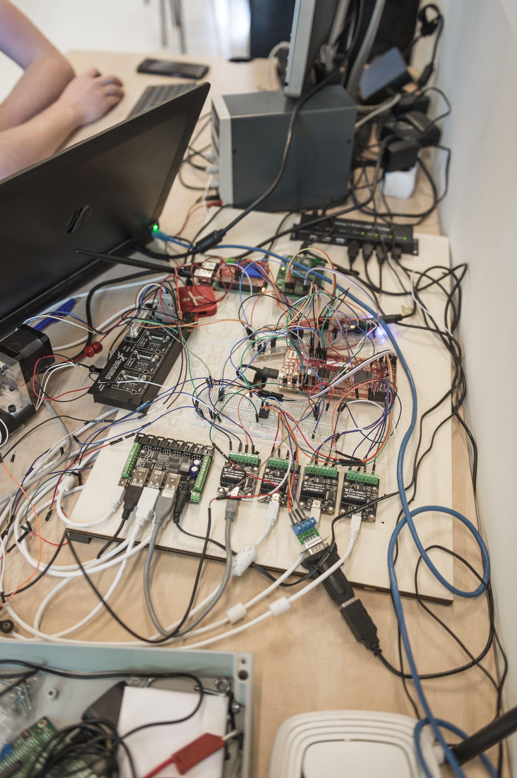 De Hyperloop mag een passief systeem lijken omdat, althans in deze fase, de voorstuwing van buiten komt. Maar niets is minder waar. De Delftse Hyperloop-capsule, zelf 4,5 meter lang, bevat 112 meter kabelboom en 401 meter draad. Dat is omdat de hele capsule tjokvol sensoren zit.