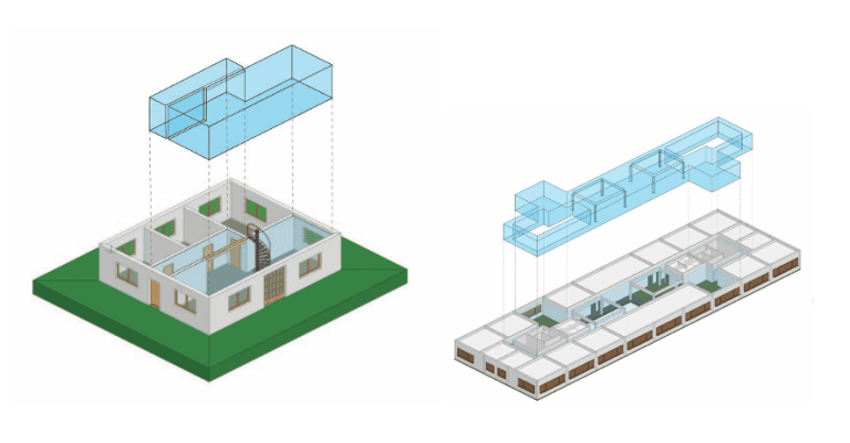 FIGURE: Automatic derivation of living spaces from BIM to GEO. (Image: Jasper van der Vaart)