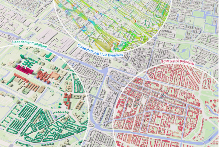 In addition, the design is placed in the virtual twin city model to check its interaction with its surroundings. After all, regulations apply here too. What is the view and will the view of others be obstructed by the new building? How much sunlight will there be on the roof and façade? How will the design impact traffic noise? How far is the nearest fire hydrant? Digitising these checks can speed up the processing of building permit applications and make them more objective and transparent. That is the idea.