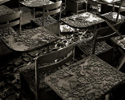 Fotograaf Samuel Potera fotografeerde voor 2005 vaak landschappen en soms portretfoto’s, maar verloor door de orkaan zijn donkere kamer en een groot deel van zijn uitrusting. Een van zijn foto’s (Desks, St Mark Catholic School, Chalmette) toont verwoeste schooltafels waarvan je het craquelé bijna kunt voelen. Nu zijn water en natuur zijn centrale thema’s.