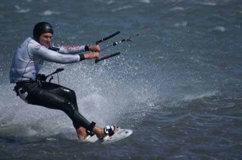 Trucjes doen voor een jury, hoogspringen en draaien in de lucht, gingen hem goed af. In het najaar van 2001 werd hij derde op het NK. Na de deelname aan diverse internationale wedstrijden stapte hij in 2007 over op speedkitesurfen: simpelweg over een afstand van vijfhonderd meter de hoogst mogelijke snelheid zien te halen. Zijn tweede plaats tijdens een worldcupwedstrijd in Frankrijk, in april, slaat hij hoog aan. “Het is een jonge, kleine sport, maar ik ben blij dat ik mij binnen een jaar tussen de groep heb gewerkt die al vijf jaar heel hard bezig is. Mijn uitdaging is om mijn studie te gebruiken om de rest te verslaan. Ik wil de aerodynamica in de praktijk toepassen.” Er zijn twee manieren om heel hard te gaan, legt hij uit. “Een: een heel harde wind pakken en zorgen dat je controle houdt. Twee: iets maken dat zo efficiënt is, dat je bij wijze van spreken twee of drie keer de windsnelheid kan halen. Ik kom nu tot 1,8 keer de windsnelheid, als de wind niet te sterk is.”