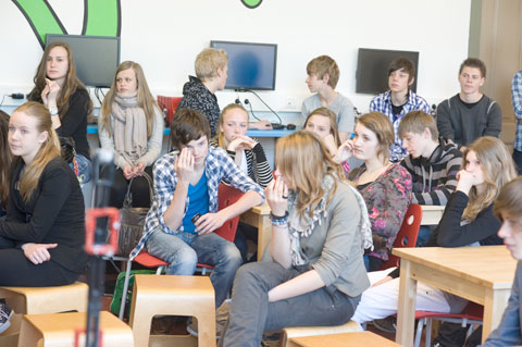 Voor sommigen begint de lange reis voelbaar te worden, anderen zoeken afleiding. “Laat die computers nog even met rust, jongens”, corrigeert Tijsen zijn klas. Hij moet nog uitleggen hoe de opbouw van de studie met bachelor- en masterfase in elkaar steekt, en de meeloopdagen (gelegenheid voor leerlingen van 5 of 6-vwo om een dag mee te lopen met een student) onder de resterende aandacht brengen. Als de groep gesplitst wordt voor de workshops, leven de leerlingen weer op.