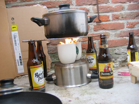 In hun kasten vonden ze een grote hoeveelheid voedsel. Maar veel was onbruikbaar. Tokaya: “We hadden alleen gedroogde tomaten, sardientjes en brood in huis, de rest moest allemaal worden gekookt.” Die situatie duurde niet lang, want de studenten bedachten een typisch Delftse oplossing. Ze verzamelden alle aanwezige kaarsen in lege kopjes, staken deze aan en goten er vet bij. Dat leverde een grote vlam op, waardoor ze spaghetti konden koken. “Iedere TU’er weet dat vet brandt, dus we hadden dit vrij snel bedacht”, zegt Tokaya.