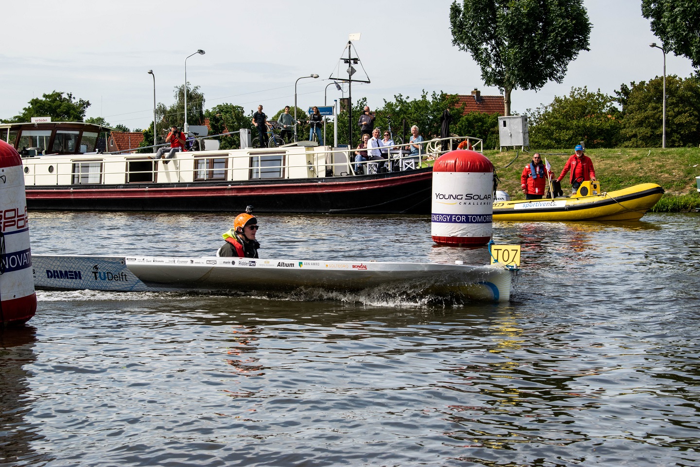 Het TU Delft Solar Boat Team in actie in Purmerend. (Foto: TU Delft Solar Boat Team)