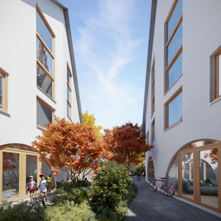 The space between the houses is intended to be a meeting place within the seclusion of the old church walls. (Image: HUM design & development).