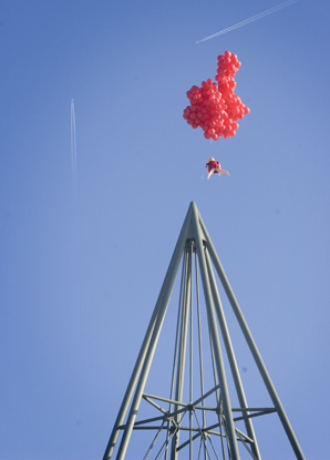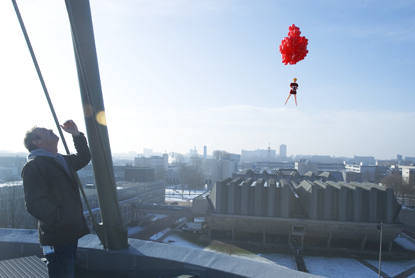 Hoe ze het dak zijn opgekomen is een mysterie. Marco Westhoff van de directie Facilitair Management en Vastgoed heeft nog tevergeefs gezocht naar sporen langs de gevel. Eenmaal op het dak moet het ook nog een hele toer zijn geweest om de touwtjes hoog aan de metalen kegel vast te binden. “Hoe ze het gedaan hebben is een raadsel”, zegt Westhoff. Samen met een collega viste hij de lijntjes uit ede lucht met een lange lat.