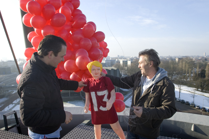 van de afdeling facilitair management en vastgoed, die nog tevergeefs had gezocht naar sporen langs de gevel omdat hij dacht dat bergbeklimmers achter de stunt zaten, viste de lijntjes uiteindelijk uit de