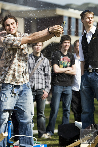 Hoe maak je eerstejaars studenten inzichtelijk hoe thermodynamica werkt? 3mE-professor Bendiks-Jan Boersma liet ze afgelopen donderdag met dat doel petflesjes afschieten.