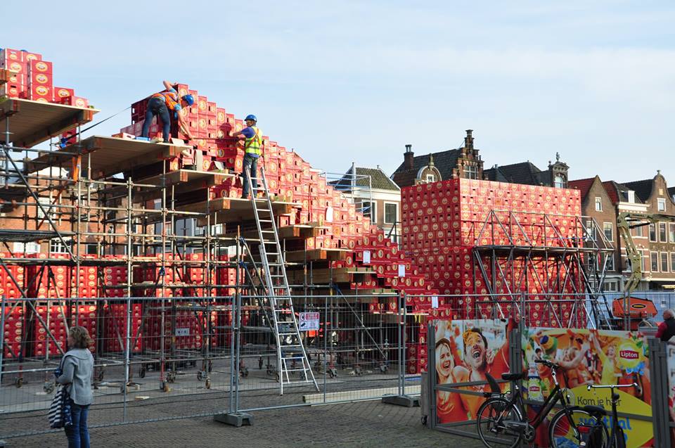 Dat ze goed de hoogte in konden bouwen, dat hadden de studenten van gezelschap Practische Studie (de studievereniging van Civiele Techniek) in 2011 al laten zien. Met de veertien meter hoge brug van veertienduizend kratten die ze op de Markt in Delft bouwden, werden ze officieel recordhouder bierkrattenbrugbouwen.