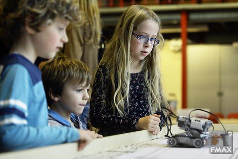 Kinderen konden een workshop Lego Mindstorms doen. De kinderen moesten met de computer een parcours programmeren in een autootje.
