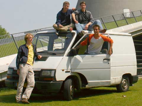 Dat leek vier tweedejaars studenten luchtvaart- en ruimtevaarttechniek wel een leuke uitdaging. Dus surften zij naar marktplaats en voor ze het wisten hadden ze in de Haagse Schilderswijk voor tweehonderd euro een Renault Traffic uit 1991 op te kop getikt. Alleen de apk-keuring moet nog even geregeld worden, naast wat kleine noodzakelijke dingetjes. “Maar zover wij kunnen beoordelen, is hij wel oké”, zegt teamlid Steven Quaak. “We hoeven ook alleen maar heen.”