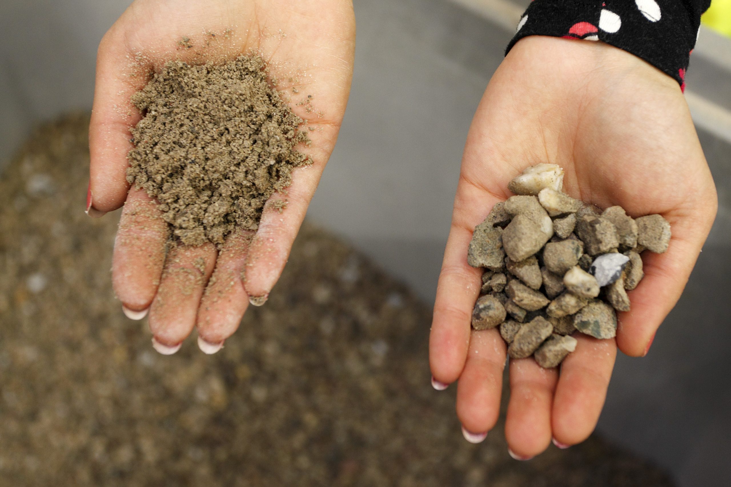 Fifteen large bags full of rubble have just been delivered to TU Delft’s recycling lab. Peter Rem, Professor of Resources and Recycling sifts through the ground concrete in the bags. He takes a handful and lets the pieces fall back into the bag, as if they’re jingling gold coins from a hoard of treasure. “This isn’t just waste; it’s also a treasure trove,” he says, enthusiastically.