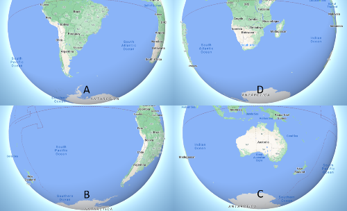 The globe view of the locations of Antarctica’s four sectors. (Photo: Edited from Google Maps)