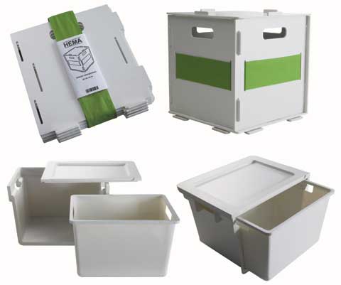 ‘De witte doos’ van vierdejaars IO-student Peter Noorlander (22) won de eerste prijs. De Hema vindt de doos, bestaande uit zes losse kunststof panelen die heel gemakkelijk in elkaar gezet kunnen worden tot een krat met een gekleurde klittenband eromheen, een ‘sterk concept’, ‘goed doordacht’ en ‘prima uitgewerkt’. “Het is door haar eenvoud direct herkenbaar als opbergsysteem en door de vormgeving vernieuwend genoeg om de consument te prikkelen.”