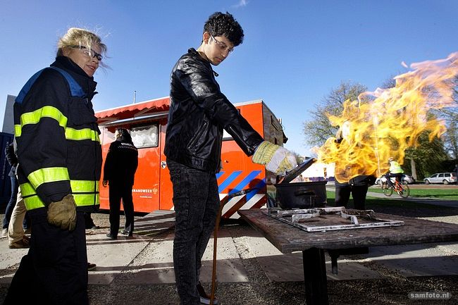 De actie bij de aula was onderdeel van een landelijke actieweek. “Studenten weten niet hoe ze moeten handelen bij brand. Dit levert levensgevaarlijke situaties op”, zegt VSSD-voorzitter Ivo van der Horst in een persbericht. Vooral de vlam in de pan komt geregeld voor. Vandaar dat studenten vandaag konden oefenen hoe ze in zo’n situatie moeten handelen. Ook was er een container vol rook, waarin studenten konden ervaren hoe moeilijk het is om bij brand de weg naar buiten te vinden.