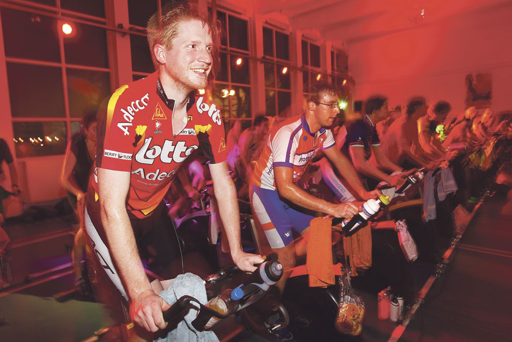 In dresscode rood fietsen op Valentijnsdag vijftig studenten zich suf bij het Spinning Event in de sporthal bij Sport & Cultuur. Door vier uur lang fanatiek te spinnen, sponsorden de spinners student Wim Verhagen voor deelname aan de Alpe d’Huzes.