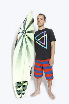 Na de middelbare school reisde hij met een vriend een jaar de wereld over, op zoek naar zeewater waar geen wetsuit tegen de kou nodig was. Om te golfsurfen, op een shortboard. “Je ligt op je plank te wachten op een goede golf. Dan moet je peddelen om daarin te komen en je te laten voortstuwen door de energie van de golf. Geen golf is hetzelfde en niet elke golf is geschikt. Hij moet niet dichtslaan, maar geleidelijk één kant op breken. Het ultieme is om jezelf onder de brekende golf te positioneren, in de barrel of tube. Dat geeft een onbeschrijfelijk intens gevoel.”