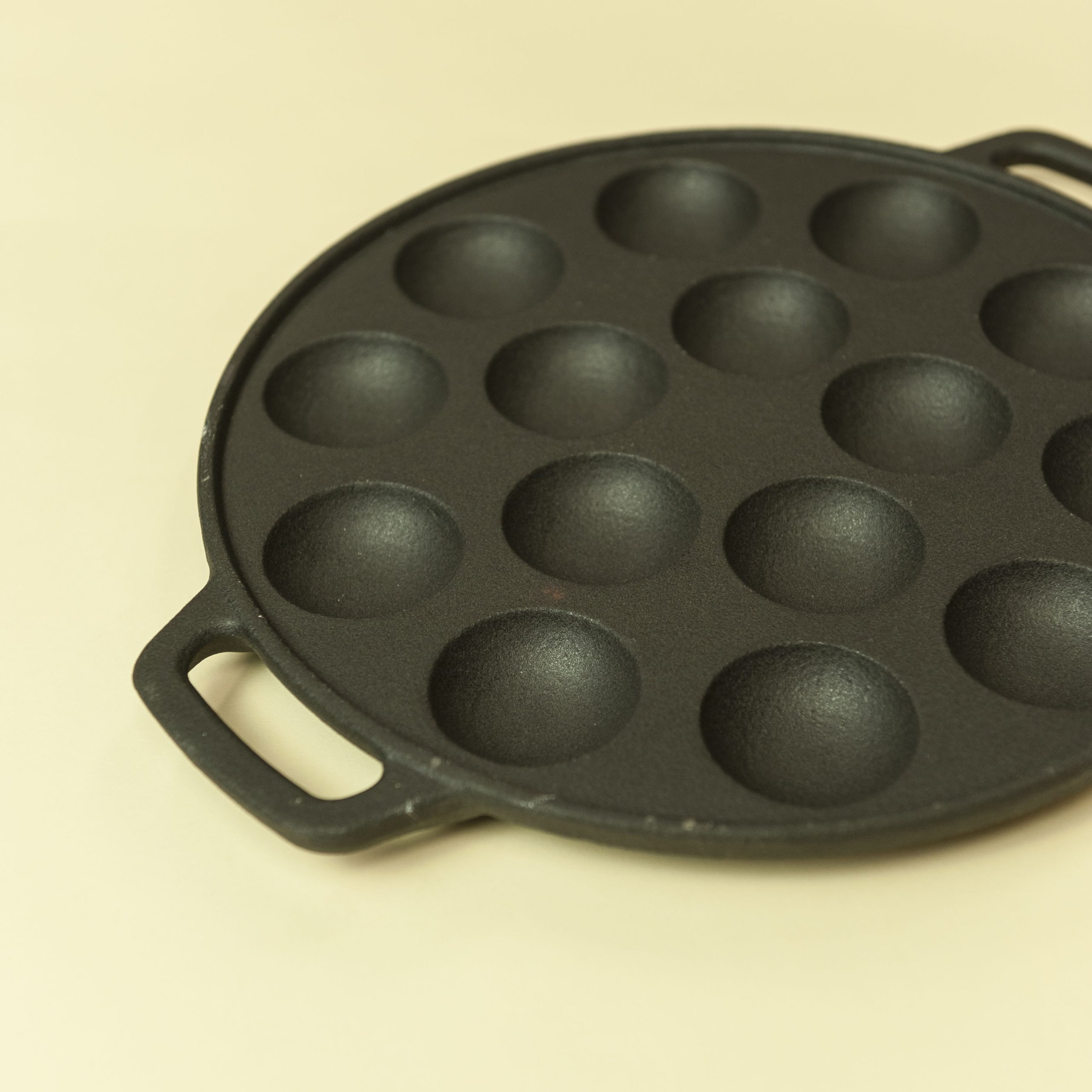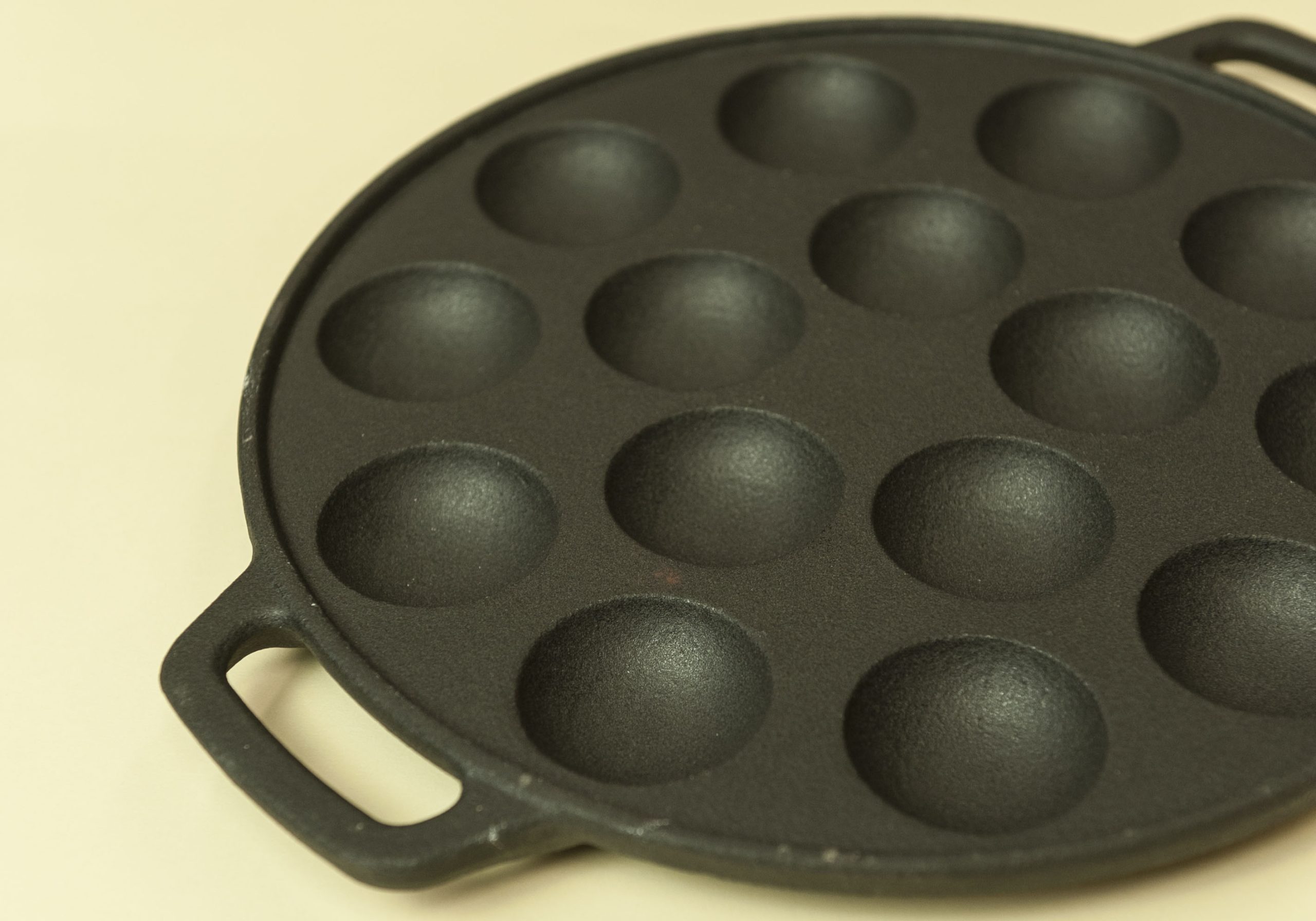 PoffertjespanUsually made from cast iron, this is a special pan for making poffertjes, with circular indentations for the batter to make the perfect bite-sized pancakes. You can also buy special dosage dispensers, which make it easy to fill the sections of the pan with just the right amount of batter without spilling. The mixture puffs up in the pan in the process of baking, hence the name. They are typically served with butter and icing sugar. You can buy them pre-prepared in the supermarket, but they don’t taste nearly as good as fresh from the pan.