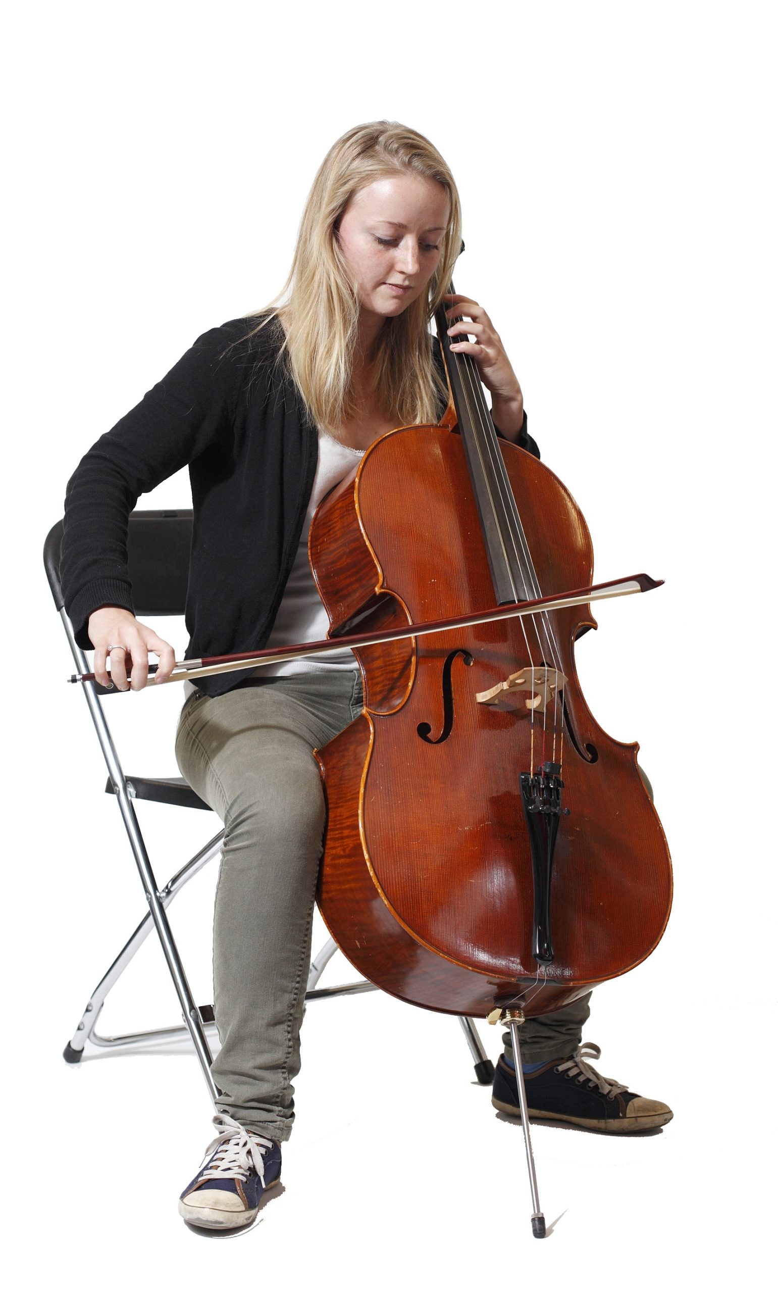 Stoevelaar zit op het puntje van haar stoel achter haar cello. Rechte rug. Geroezemoes. “Jullie zijn het misschien niet gewend”, zegt Pfeiffer, “maar in mijn repetities wil ik dat jullie stil zijn. Het gaat vooral om muziek maken. Oké?” Geknik. “Ready? One, two… one, two, three, four.”