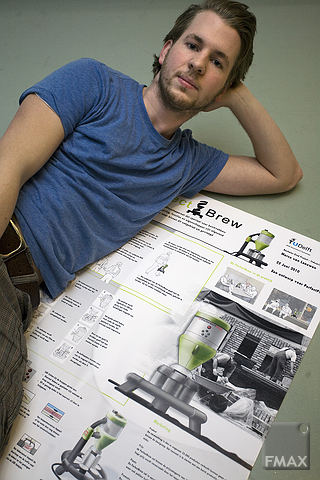 Van Leeuwen vatte zijn eindproject vooral op als een echte ontwerpopdracht, de uitgelezen kans om intensief aan het tekenen te slaan. “Het bedrijf vond het idee om iets met koffie te doen super”, zegt hij. “Maar: elk knopje is er voor bouwvakkers één teveel. Het moest dus een supersimpel no-nonsense-apparaat zijn. Het mijne was eigenlijk te ingewikkeld.”