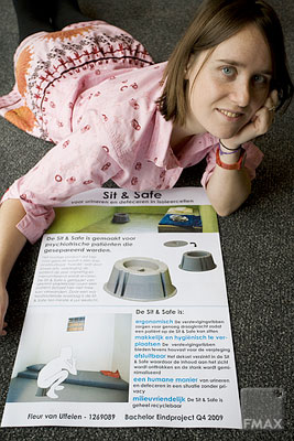 Een patiënt in een isoleercel zit niet alleen opgesloten met zichzelf, maar met een beetje pech ook met een lekkende, stinkende po. Dat moet anders kunnen, dacht Fleur van Uffelen (24), en ze ontwierp de ‘Sit & Safe’.