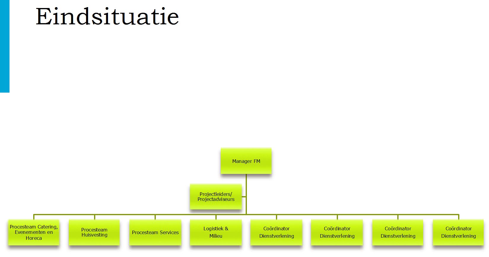 Om dat alles te bereiken, valt FM niet alleen terug op vaste serviceteams in de gebouwen. Er verandert meer. Zo gaan de teams van facilitair medewerkers vallen onder vijf coördinatoren, die puur en alleen bezig zijn met het aansturen van deze teams. Daarmee komt FM tegemoet aan klachten van servicemedewerkers over onduidelijkheid en een gebrek aan aandacht en waardering. FM hoopt dat servicemedewerkers tevredener worden. “Aangezien dienstverlening mensenwerk is zal dit weer leiden tot betere dienstverlening”, aldus de notitie.