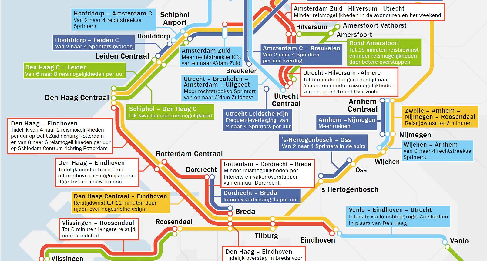 De vermindering van het aantal sprinters richting Rotterdam hangt samen met de aansluiting van Den Haag Centraal op de hogesnelheidslijn (HSL). Doordat die HSL tot april 2017 door een gebrek aan materieel maar tot Breda rijdt, moeten reizigers richting Eindhoven in Breda overstappen op een gewone intercity. Zodra dat niet meer nodig is, wijzigen de NS de vertrektijden van de HSL en kunnen er weer vier sprinters per uur in Delft Zuid stoppen.